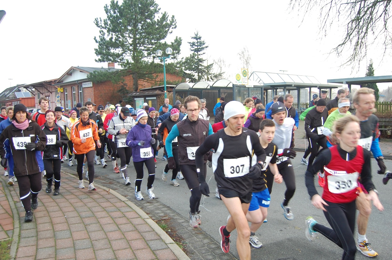 Midlumer Silvesterlauf, der vom Dorumer Bahnhof in die Midlumer
