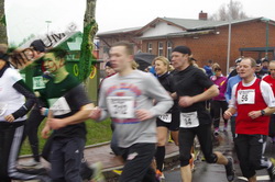 Beim Startschuss verhedderten sich die vorderen Athleten noch mit dem Startband, aber dann ging die Post ab. |