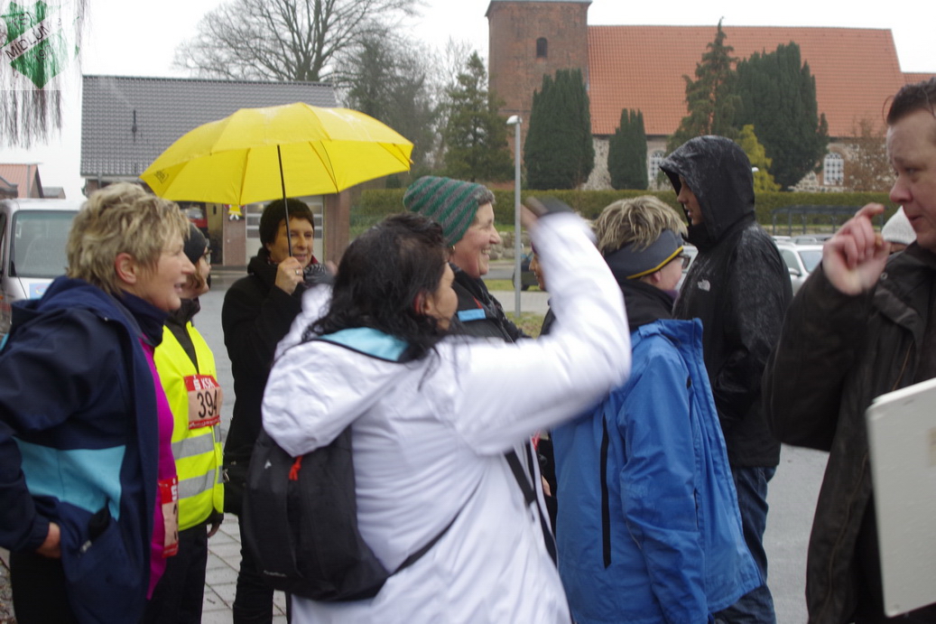 Dorum/MIDLUM. Hans-Hermann Cramer, Mitglied im Organisationsteam, zog nach dem 45. Silvesterlauf einmal mehr eine positive Bilanz: Alles ist reibungslos verlaufen, und die Teilnehmerzahl ist gegenüber dem Vorjahr noch einmal gestiegen. Der Lauf, der vom Dorumer Bahnhof in die Midlumer Ortsmitte führt, wurde am Sonntag zwar von Regen und Sturm beeinträchtigt. Doch das Wetter konnte Einsatzfreude und Laune der Teilnehmer nicht trüben. Bei widrigen Verhältnissen liefen sich einige schon vor dem Start warm, als sie nach der Anmeldung von Midlum nach Dorum trabten. 137 Athleten und Hobby-Läufer waren am Bahnhof in Dorum vor Ort, als um Punkt 10 Uhr der Startschuss fiel. Mit der Resonanz zeigten sich auch die Veranstalter aus Midlum hochzufrieden. Im Vorjahr waren 124 Läufer an den Start gegangen. Beim Startschuss Für das Läufer-Feld war auch wieder der Bürgermeister der Gemeinde Wurster Nordseeküste, Marcus Itjen, zur Stelle. Die Startnummern waren ab 9 Uhr in der Gaststätte Milmer Treff ausgegeben worden. Dort fand nach dem Lauf auch die Siegerehrung statt.